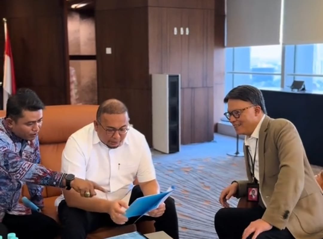 Jakarta, scmnews.id-Bupati Solok, Jon Firman Pandu mendampingi Wakil Ketua Komisi VI DPR RI dari Fraksi Gerindra, Andre Rosiade, bertemu langsung dengan Direktur Utama Telkomsel, Nugroho, di Jakarta, 2 September 2925 , guna mengusulkan tambahan pembangunan enam tower Base Transceiver Station (BTS) Telkomsel di Kabupaten Solok.