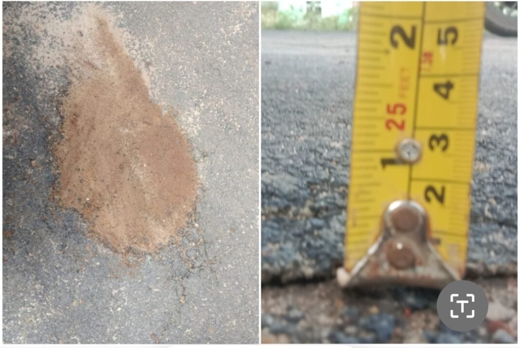 Kuat Dugaan hal itu di sebabkan pengaplikasian aspal cair yang kurang serta penghamparan material yang diduga terlalu tipis, disinyalir hanya menghasilkan konstruksi jalan dengan ketebalan hanya berkisar 0.5 cm hingga 2cm saja.