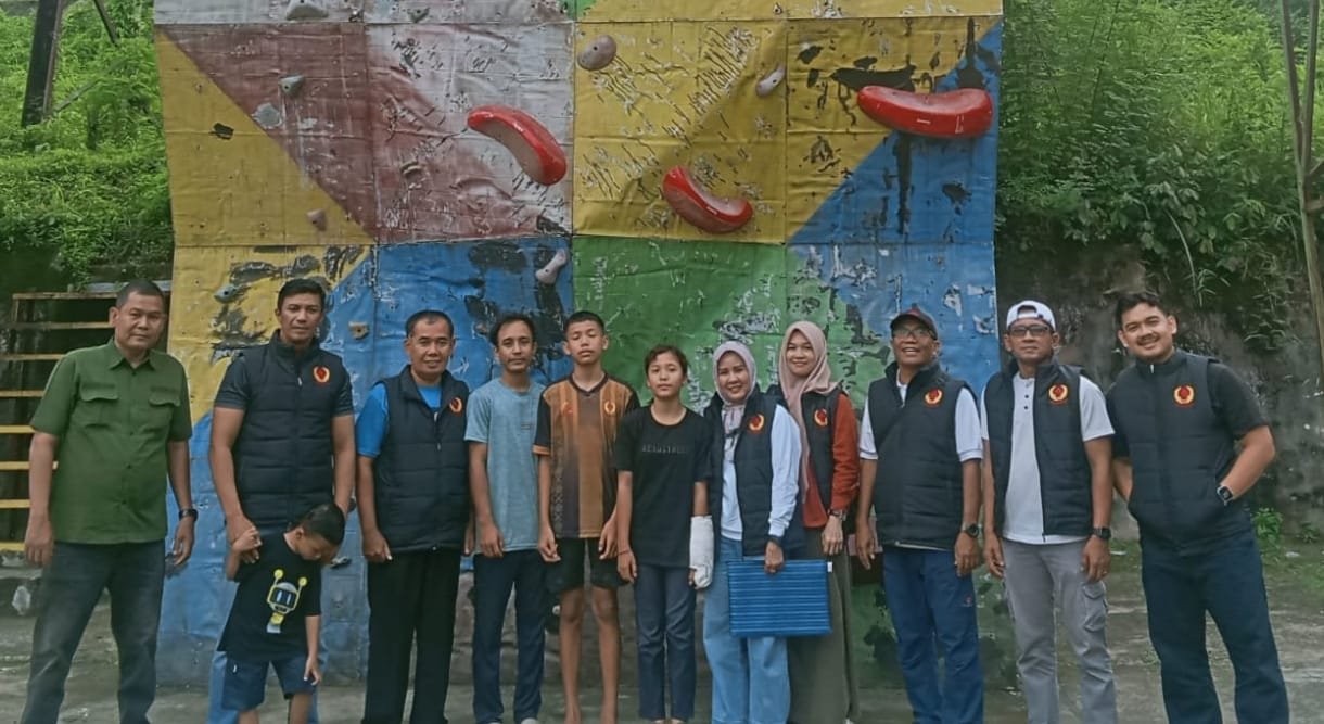 Tim Monev I KONI Sawahlunto yang terdiri dari, Boy Purbadi (Ketua), Nina Sangra Violita, Adrizal, Vicky Vilfadli, Muhammad Ikhsan, Fitria Nofa, Tumpak Abdurrahman Simamora dan Hendra Idris juga didampini Sekretaris KONI Kota Sawahlunto Hendri Febriyudi, Sabtu (7/3/2026), sambangi Pengkot FPTI Sawahlunto di Silo Saringan tempat berlatih cabor Panjat Tebing.